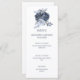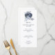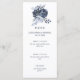 Den här eleganten och det enkla bröllop-menykortet innehåller rik, djupt dammigt blåa blommor och löv. Vi har använt konst via LABF-skapelser.