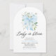 Fira pojke med den här charmerande bågformade inbjudan! Det är perfekt för en sofistikerad och snyggt babydusch. Det är en fin blå blommigt, en söt bog och en modern elegant. 🌸 🍼 💙 Ange tonen för ett vackert firande med detta tidslingslösa och förtjusande inbjudan! ✨ 🎀