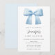 Celebrate an elegant baby shower with this blue bow party invitation, featuring a pretty watercolor illustration on a clean white background. Ideal for high tea, garden parties, or any baby celebration - honoring the mother to be in sophisticated style.