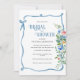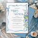 Den blå blommigten accentueras med underbart typsnitt och skript som görs i samordningen av färg inbjudningskort för möhippan. En inbjudan till perfekt bröllop möhippa för alla säsonger. En vacker inbjudan till eleganten.