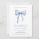 Celebrate an elegant boy baby shower with this blue bow party invitation, featuring a pretty watercolor illustration on a clean white background. Ideal for high tea, garden parties, or any baby celebration - honoring the mother to be in sophisticated style.