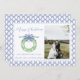 Fotokort för vattenfärg Blue Bow Coastal God-Helgdag-Vintage vid julafton. Det här vackra julfotkortet har vattenfärgsblått gingham, julkrans, guldjingel klockor och blått ram för ett foto. Det är perfekt om du är tittar för ett klassiskt, söderut, barnsligt julkort. Meddelande mig om du behöver justera eller matcha objekt:)