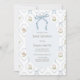 Classic baby shower invitation featuring a soft blue egg shape, watercolor bow, and delicate floral pattern details. Perfect for a spring baby shower, Easter-inspired baby celebration, or a timeless blue floral baby shower theme.