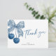 Express heartfelt gratitude in timeless style with this Blue Bow Something Blue Theme Bridal Shower Thank You Card. Designed with a soft blue and white color palette, this elegant thank you card features a delicate blue bow illustration paired with refined typography, perfectly complementing a “Something Blue” bridal shower theme.