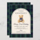 Blue Bow Teddy Bear Tartan Birthday Inbjudningar