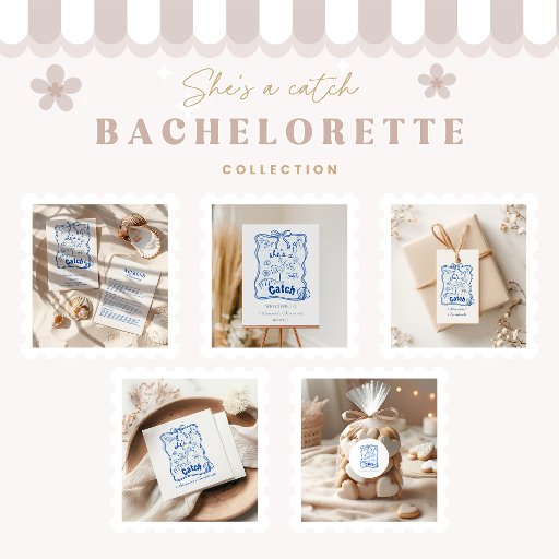 Låt nedräkningen till sol-genomblöt roligt börja! Den här leksaken "Shes a Catch" har tropiska ikoner med doodle-stil - från handflatan träd och cocktails till hjärtan, ringar och diamantgnistor. Det är perfekt för en Miami-strand, bachelorette, poolside möhippa helg, eller firande. Helt redigerbart och redo för att matcha din kustenergi.
