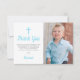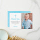 Blue Boy Baptism Foto Tack från första födelsedag Kort