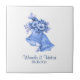 Söt blå bröllop klockor på vit personlig med namn och datum.