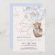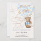 Blue Brown Nalle Luftballong Boy Birthday Inbjudningar