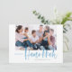 Lycka till Hanukkah! Skicka semesterhälsningar till dina kära med det här handskrivna platta kortet Lycklig Hanukkah. Den har en blå pensel i modern kalligrafi med en passande fin snö mönster. Anpassa genom att lägga till ett foto, namn, datum och meddelande. Det här festive blue calligraphy-kortet finns i andra färg och helgdag.