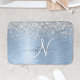 Blue Brushed Metall Silver Glitter Monogram Namn Badrumsmatta