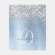 Blue Brushed Metall Silver Glitter Monogram Namn Fleecefilt