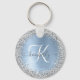 Blue Brushed Metall Silver Glitter Monogram Namn Nyckelring