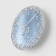 Blue Brushed Metall Silver Glitter Monogram Namn Rund Klocka