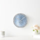 Anpassa chicens väggklocka i trendiget enkelt med söt silver mousserande glitter på blå, borstad metallbakgrund.