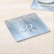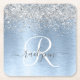 Blue Brushed Metall Silver Glitter Monogram Namn Underlägg Papper Kvadrat