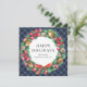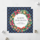 Anpassningsbar blå buffelplatta visitkort för helgdag med en vattenfärgad julkrans av grenar, koner och rosett band. Anpassa enkelt det här visitkortet för helgdag med ditt företag namn.