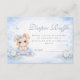 A sweet and dreamy baby shower design featuring an adorable bunny surrounded by soft blue florals and delicate butterflies. The gentle watercolor background in pastel blue tones creates a calm nursery aesthetic, while the floral details add a romantic and storybook charm. A tiny bow and tutu give the bunny an extra adorable touch, making the design perfect for a soft, elegant celebration. Ideal for a blue themed baby shower with a whimsical woodland feel.