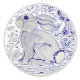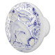 I min kaka i blått och vitt finns en kanin i en stiliserad skogsmiljö med blommor, löv och bär.Kaninen på den här knoppen ansikte lämnat. En underbar hemdekanal eller ett hantverksmässigt accent! Det påminner om det antika Delft-potteriet men med ett modernt utseende.Säljs endast av Zazzle, med dess hundraprocentiga kundgaranti. Nyskapande, unika teckningar och design av Tuzi Williams.