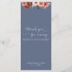 Önska dina gäster med det här expertmenykortet... Ange separat design med en unik rosa och burgundisk arrangemang högst upp och ditt/dina namn och datum på grund. Handskrivet skrivstipografi på baksidan och framsidan med tack för ditt meddelande till gästerna. Tillbaka i elegantens dammiga blå skugga.