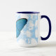 Originaldigitalteckningar som består av en vintage löv mönster, som återskapas till popkonst med lätt tryckta blå toner. En artsy stil-fjärilsilhuett placeras på framsidan av mugg. Insidan av mugg och handtaget är marinblått. Det här är 15-uns mugg, bara perfekten storlek för ditt bryggkaffe eller te - eller till och med hett choklad! Det skulle vara en underbar gåva och man kan lägga in paket med kaffe, tepåsar eller hett choklad. En annan presentidé är att lägga en liten växt i den för att göra extra speciellt för din älskade.