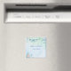 En enda blå fjäril på en blek, pastablått och grönt vattenfärgsbakgrund med en blommigt i kant med en enda rosa blomma, med eller utan valfri text.