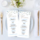 Det här är en blå möhippa-meny för fjäril. Utformningen består av ett blått fjäril- och silver-glitter-tema. Butterflies-meny, dekorationer, händelseavtryckarmeny med glitter, duschidéer, födelsedagsfest food appetizer-menyer