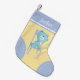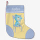 Blue Calico Bear Smiling på stol Liten Julstrumpa