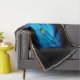 En fraaktaliserad blå katt ansikte med bedövande gult öga mot svart bakgrund.