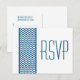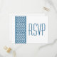 Chic och modernt vykort för svar på Chevron Gräns Bröllop med som innehåller ett enkelt chevron mönster gräns i mörk blått och vitt. Den här snyggten anger tonen för ett elegant bröllop. Enkel att anpassa, lägg bara till din bröllop-information i den text fält tillhandahåller. Klicka på Anpassa om du vill söka efter fler anpassningsalternativ.