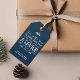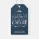 Christian jul Verse Typography Helgdag Gift-Märkre med Luke 2:11 i festlig typografi på en strålblå bakgrund, med precis blomning av vita gräs grenar och gräs-koner.