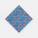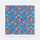Blåblå bakgrund fylld med olika dekorativt inslag i samband med vinter och festive firande. Färgornament visas på framträdande plats, främst i nyanser av orange, blått och rött, med intrikat snöflingmönster och rand. Dessutom är många snöflingor med olika former och storlekar utspridda över hela världen, tillsammans med små kretsar i kontrasterande färg, vilket ökar fräckheten. Den totala effekten är lekfull och glad och framkallar en känsla av helgdag.