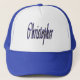 Den här hatten har en blå stjärna Christopher namn logotyp.