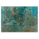 Köp och späd maten på ett säkert sätt på denna rektangulära glasstyckningsdel som har fotobilden av den vackra, turkos färg i Chrysocolla-mineralstenen. Den perfekt som är storlek för att hugga och äta små grönsaker och frukt. Observera att det inte finns någon riktig sten i detta ärende.