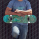 Skateboard-design som ger en bild av fantastisk, turkosa blått färg av Chrysocolla mineralsten. Välj storlek för skateboard. Slutför din skateboard genom att lägga till lastbilar och hjul om du vill.