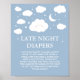 Blue Cloud Baby Shower Late Night Diaper Game Poster