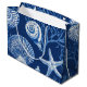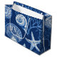 Gift Bag - Elegant blue and white coastal toile pattern with detailed coral, seashells, and starfish illustrations. Ideal for beach lovers, coastal decor fans, and those who enjoy classic ocean-inspired designs.