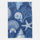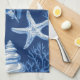 Kitchen Towel - Elegant blue and white coastal toile pattern with detailed coral, seashells, and starfish illustrations. Ideal for beach lovers, coastal decor fans, and those who enjoy classic ocean-inspired designs.