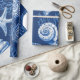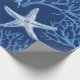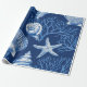 Wrapping Paper - Elegant blue and white coastal toile pattern with detailed coral, seashells, and starfish illustrations. Ideal for beach lovers, coastal decor fans, and those who enjoy classic ocean-inspired designs.