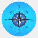 Vintage stil (blå nautiska kompass) ro och havsblå bakgrund.
