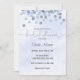 Inbjudningskort för möhippan med blå konfetti-design och ljusblå vattenfärgsbakgrund.