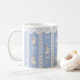 Start your spring mornings or serve Easter brunch coffee in style with this elegant coquette aesthetic ceramic mug. Featuring a beautiful repeating pattern of watercolor bunnies, delicate white lace stripes, and white ribbon bows against a solid blue background, this feminine mug is a must-have for the season. With options to customize the design using Zazzle's intuitive tool or leave it as a stunning seamless pattern, it serves as the perfect grandmillennial holiday gift, a charming Easter basket stuffer, or a beautiful addition to your own pastel drinkware collection. Durable and microwave safe, it is as functional as it is beautiful.