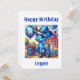 En roligt blå cowboypony firar sin åttonde födelsedag med en blå ballong med nummer 8 och en blå cowboyhatt på en gård. Anpassa kortet med ditt barns namn.