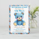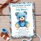 Blue Crocheted Teddy Bear Boy's Baby Shower Inbjudningar