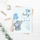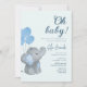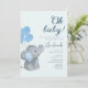 Blue Cute Baby Elephant Baby Shower Inbjudningar