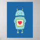 Blue Cute Clumsy Robot med hjärta Poster