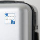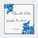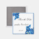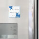 I roligt är Spara datum magneter ett underbart sätt att behålla din bröllop-dejt på allas tankar! Bakgrunden är vit med blå gräns. I motsatta hörn finns blå orkidformade blommor. Din anpassningsbar är centrerad.