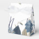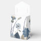 Elegant blommigt gräns-design med blå och beige blommor med långa stjälkar och löv på en vit bakgrund som skapar ett mjukt, modernt och sofistikerat utseende.