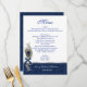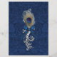 Blue Damask and Peacock Feather Bröllop Bord Menu Meny