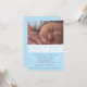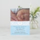 En söt baptism eller julklingsinbjudan som visar bort din söta lilla pojke. Ett ornat vitt band har en medallion som innehåller baby monogram. Dammen figur upprepas som vattenstämpel mot pastellblått på framsidan och baksidan. Lägg till anpassad information på den ljusblå panelen. Du kan lägga till ytterligare text på baksidan eller bara ta bort platshållartexten om du vill lämna baksidan tom. Lämpligt för ett baptism, ett dödande eller ett uttalande från nyfödd bebis. Finns i alternativ färg med matchande produkter.
